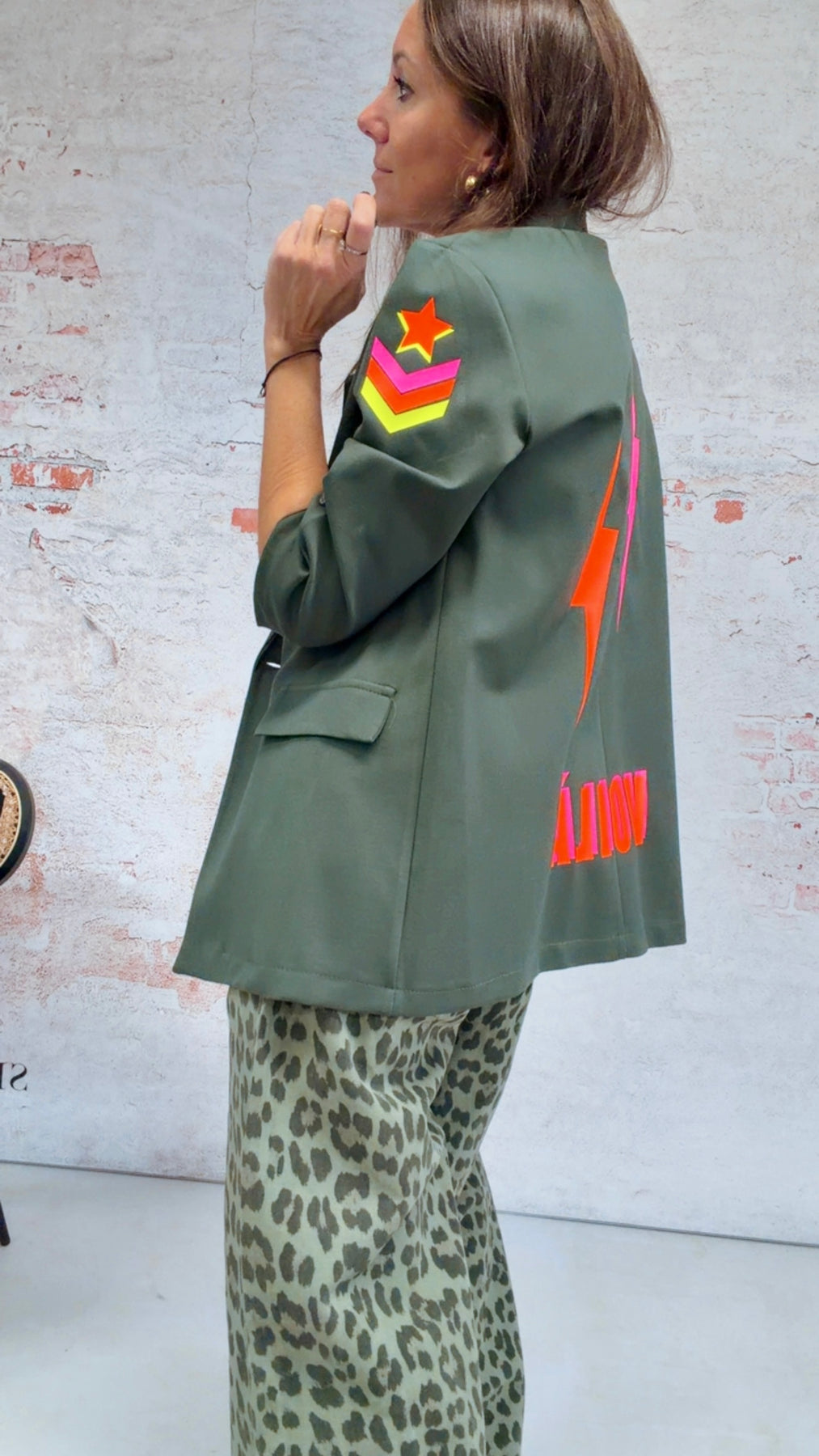 Una prenda urbana, puro “street style” para pisar fuerte por las calles llevando una blazer con mucha energía! Diseñada para una mujer que pone pasión a todo lo que hace! Así que si eres de las que te pones blazer incluso para ir a comprar el pan y encima te gusta el verde y los tonos flúor, caerás rendida a esta blazer que combinada con jeans y camiseta o jersey blanco hará girar cabezas🙌 🔝