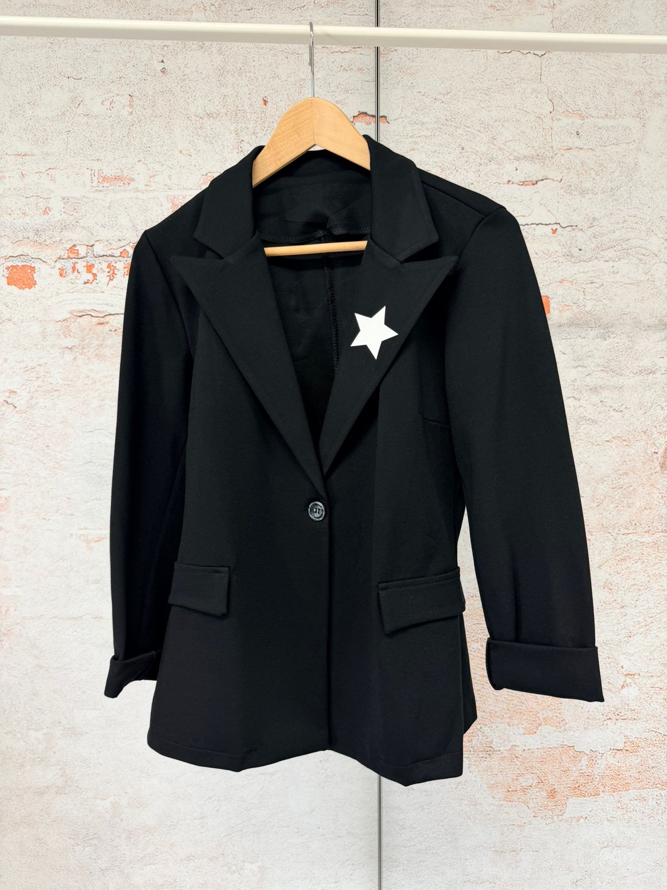 Precioso blazer negra con un diseño muy divertido. Combina con todo y se adapta a la perfección. Aconsejamos una talla más de la habitual sino te gustan muy entalladas.