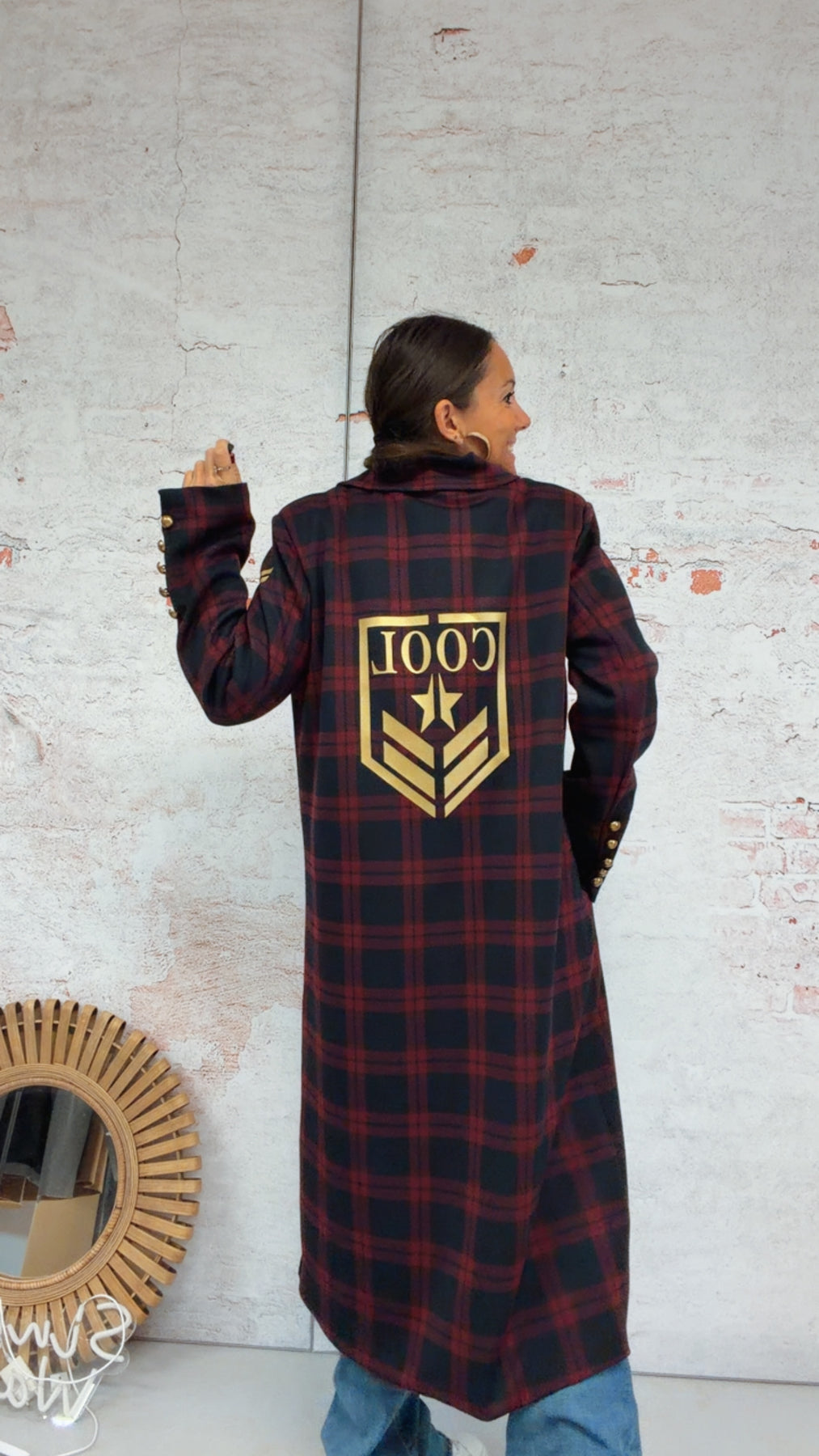 Abrigo recto, talla única. Botonadura dorada. Bolsillos. Va con la palabra Cool, pero lo puedes personalizar con tus iniciales, un año o una palabra que te guste.